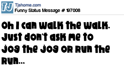 X says Oh I can walk the walk. Just don't ask me to jog the jog or run the run...
