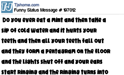 X says Do you ever eat a mint and then take a sip of cold water and it hurts your teeth and then all your teeth fall out and they form a pentagram on the floor and the lights shut off and your ears start ringing and the ringing turns into an explosive roar