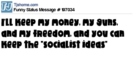 X says I'll keep my money, my guns, and my freedom, and you can keep the "socialist ideas"