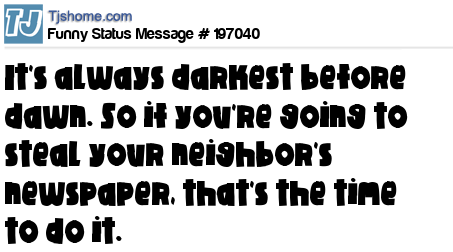 - # 157650 It's always the darkest before dawn. So if you are going to steal your neighbor's newspaper that's the best time to do it.