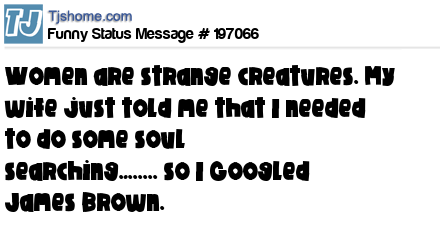 X says Women are strange creatures. My wife just told me that I needed to do some soul searching…..... so I Googled James Brown.
