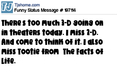 X says There’s too much 3-D going on in theaters today. I miss 2-D. And come to think of it, I also miss Tootie from “The Facts of Life.”