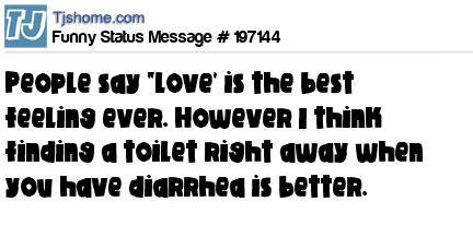 - # 204936 People say "love' is the best feeling ever. However I think finding a toilet right away when you have diarrhea is a lot better.
