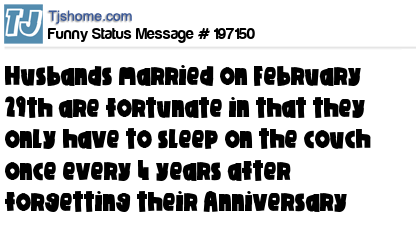 X says Husbands married on February 29th are fortunate in that they only have to sleep on the couch once every 4 years after forgetting their Anniversary