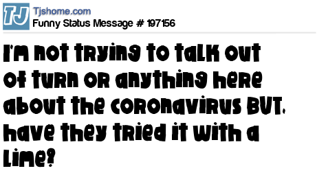 X says I'm not trying to talk out of turn or anything here about the coronavirus BUT, have they tried it with a lime?