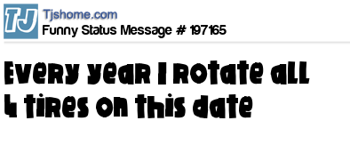 - # 208906 Get my tires rotated? Uh, pretty sure they rotate while I'm driving but thanks.