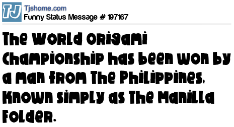 X says The World Origami Championship has been won by a man from The Philippines, known simply as The Manilla Folder.