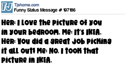X Her: I love the picture of you in your bedroom. Me: It's IKEA. Her: You did a great job picking it all out! Me: No, I took that picture in IKEA.