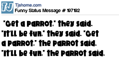 X says "Get a parrot," they said. "It'll be fun," they said. "Get a parrot," the parrot said. "It'll be fun," the parrot said.