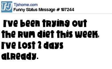 X says I've been trying out the rum diet this week, I've lost 2 days already.