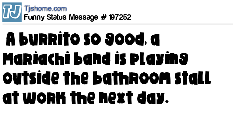 X says A burrito so good, a Mariachi band is playing outside the bathroom stall at work the next day.