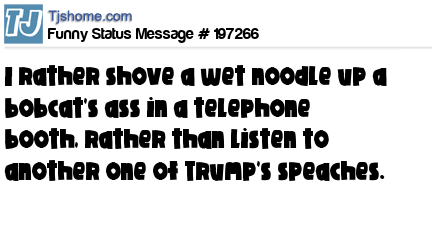 X is I rather shove a wet noodle up a bobcat's ass in a telephone booth, rather than listen to another one of Trump's speaches.