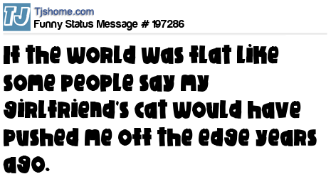 X is If the world was flat like some people say my girlfriend's cat would have pushed me off the edge years ago.