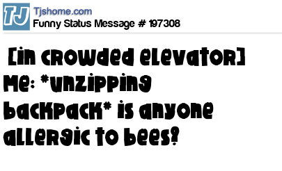 X says [in crowded elevator] Me: *unzipping backpack* is anyone allergic to bees?