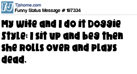 - # 192476 My wife likes it doggie style. I sit up and beg and she rolls over and plays dead.