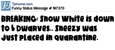 X says BREAKING: Snow White is down to 6 Dwarves.. Sneezy was just placed in quarantine.