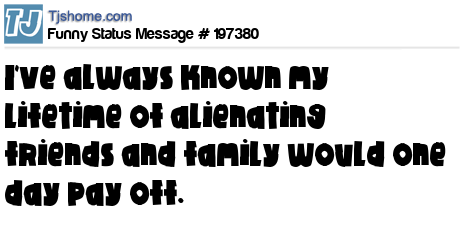 X says I've always known my lifetime of alienating friends and family would one day pay off.