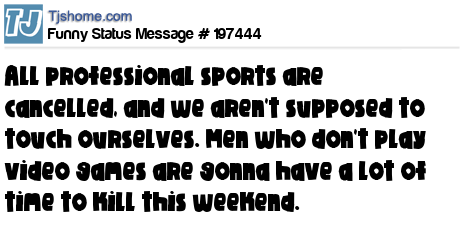 X says All professional sports are cancelled, and we aren't supposed to touch ourselves. Men who don't play video games are gonna have a lot of time to kill this weekend.