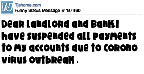 X says Dear landlord and Bank,I have suspended all payments to my accounts due to Corono virus outbreak .