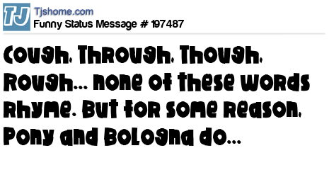 X says Cough, Through, Though, Rough... none of these words rhyme. But for some reason, Pony and Bologna do...