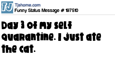 X Day 3 of my self quarantine. I just ate the cat.