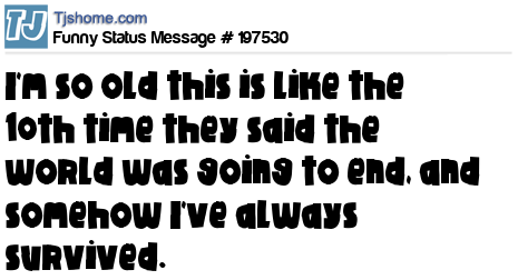 X is I'm so old this is like the 10th time they said the world was going to end, and somehow I've always survived.