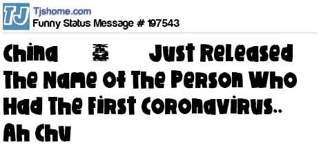 X says China 🇨🇳 Just Released The Name Of The Person Who Had The First Coronavirus.. Ah Chu