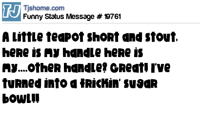 X is a little teapot short and stout, here is my handle here is my....other handle? Great! I've turned into a frickin' sugar bowl!!