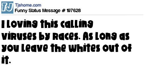 X is I loving this calling viruses by races. As long as you leave the whites out of it.