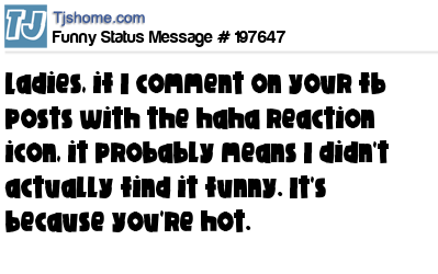 X says Ladies, if I comment on your fb posts with the haha reaction icon, it probably means I didn't actually find it funny. It's because you're hot.