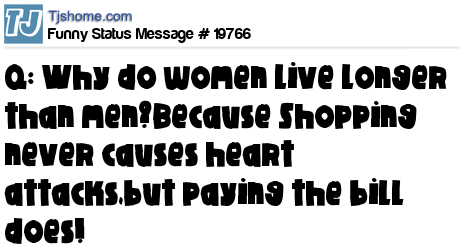 X is Q: Why do women live longer than men?Because Shopping never causes heart attacks,but paying the bill does!