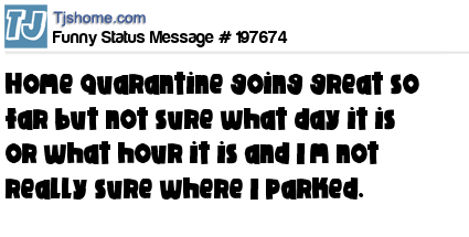 X says Home quarantine going great so far but not sure what day it is or what hour it is and I’m not really sure where I parked.