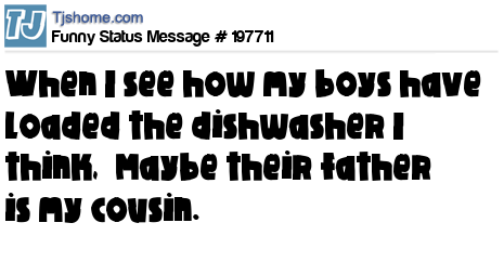 X says When I see how my boys have loaded the dishwasher I think, “Maybe their father is my cousin.”