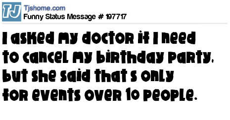 X says I asked my doctor if I need to cancel my birthday party, but she said that’s only for events over 10 people.
