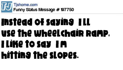 X says Instead of saying “I’ll use the wheelchair ramp,” I like to say “I’m hitting the slopes.”