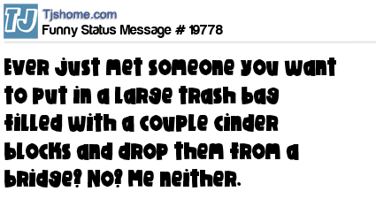 X Ever just met someone you want to put in a large trash bag filled with a couple cinder blocks and drop them from a bridge? No? Me neither.