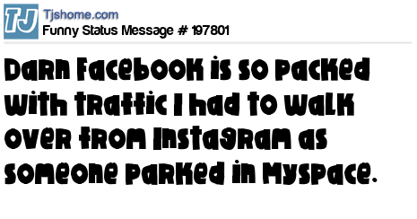 X is Darn Facebook is so packed with traffic I had to walk over from Instagram as someone parked in Myspace.