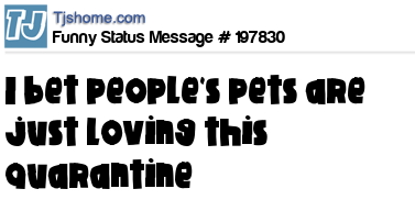 - # 197820 Your pets are going to light your sh*t on fire in rage when you start going out again post quarantine, fyi.