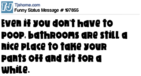 X says Even if you don't have to poop, bathrooms are still a nice place to take your pants off and sit for a while.