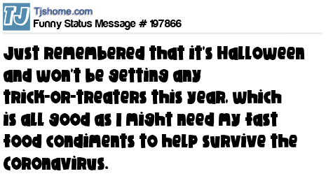 X is Just remembered that it's Halloween and won't be getting any trick-or-treaters this year, which is all good as I might need my fast food condiments to help survive the Coronavirus.