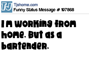 - # 197199 bartender just now: the usual? me: you know it bartender: [throws me thru window]