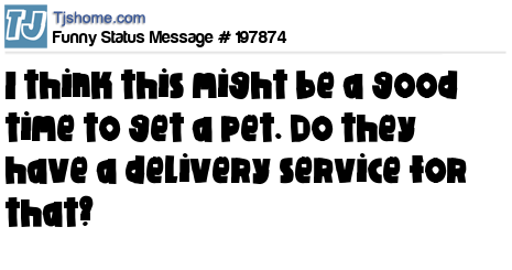 X is I think this might be a good time to get a pet. Do they have a delivery service for that?