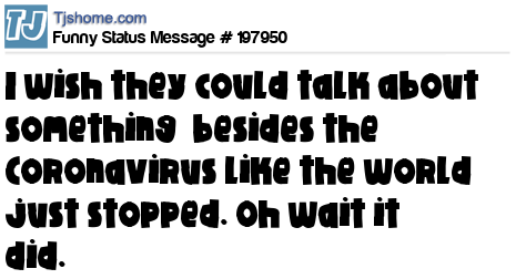 X is I wish they could talk about something besides the Coronavirus like the world just stopped. Oh wait it did.