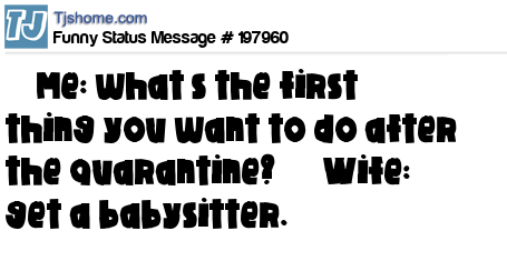 X says Me: what’s the first thing you want to do after the quarantine? Wife: get a babysitter.