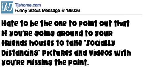 - # 198006 Just thought I'd point out that if you're going around to different friends houses to make "Social Distancing" videos with you're missing the point.