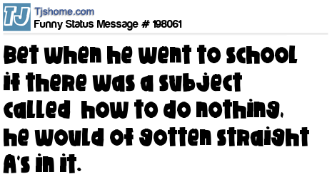 X is Bet when he went to school if there was a subject called how to do nothing, he would of gotten straight A's in it.