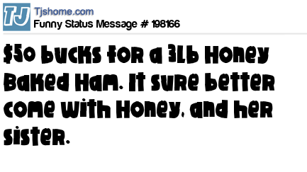 X says $50 bucks for a 3lb Honey Baked Ham. It sure better come with Honey, and her sister.