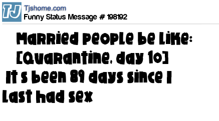 X says Married people be like: [Quarantine, day 10] It’s been 89 days since I last had sex