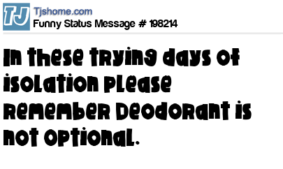 X says In these trying days of isolation please remember Deodorant is not Optional.