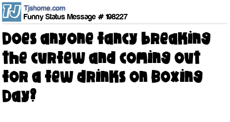 X is Does anyone fancy breaking the curfew and coming out for a few drinks on Boxing Day?